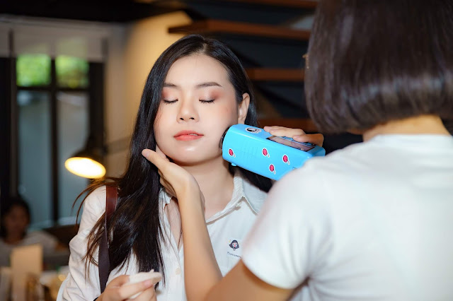 เมื่อไปถึงที่งานก็ได้พูดคุยถึงวิธีการเลือกเฉดสี ประเภทของรองพื้น และได้ลองหาอันเดอร์โทนของตัวเองค่ะ จากที่เคยคิดมาตลอดว่าตัวเองเป็นคนที่มีอันเดอร์โทนเหลือง แต่หลังจากที่ได้ลองเครื่องเทสต์ไป ก็พบว่าตัวเองมีผิวไปทางโทนกลาง ๆ ค่อนไปทางชมพูค่ะ